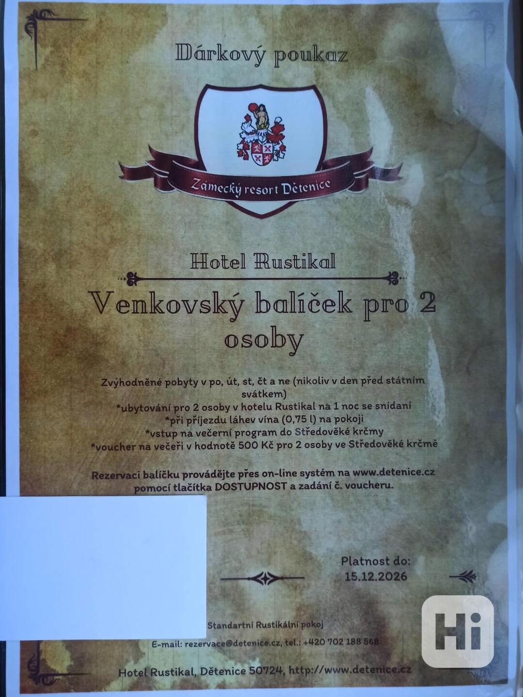 Prodám dárkový poukaz pro 2 osoby - Zámecký resort Dětenice.