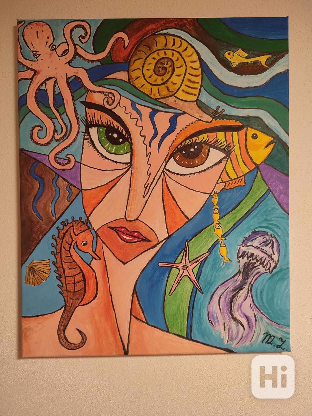 Prodám ručně malovaný obrázek, "MALÁ MOŘSKÁ VÍLA", 50 X 40 CM, akryl na plátně.